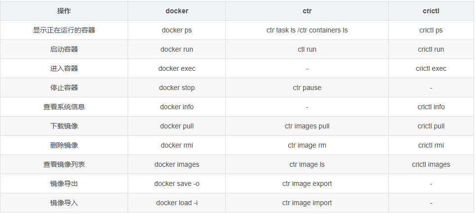 在容器生态中docker、ctr、crictl是常用的三个命令行工具,但是他们的定位和使用场景差异显著,以下是他们之间的对比: